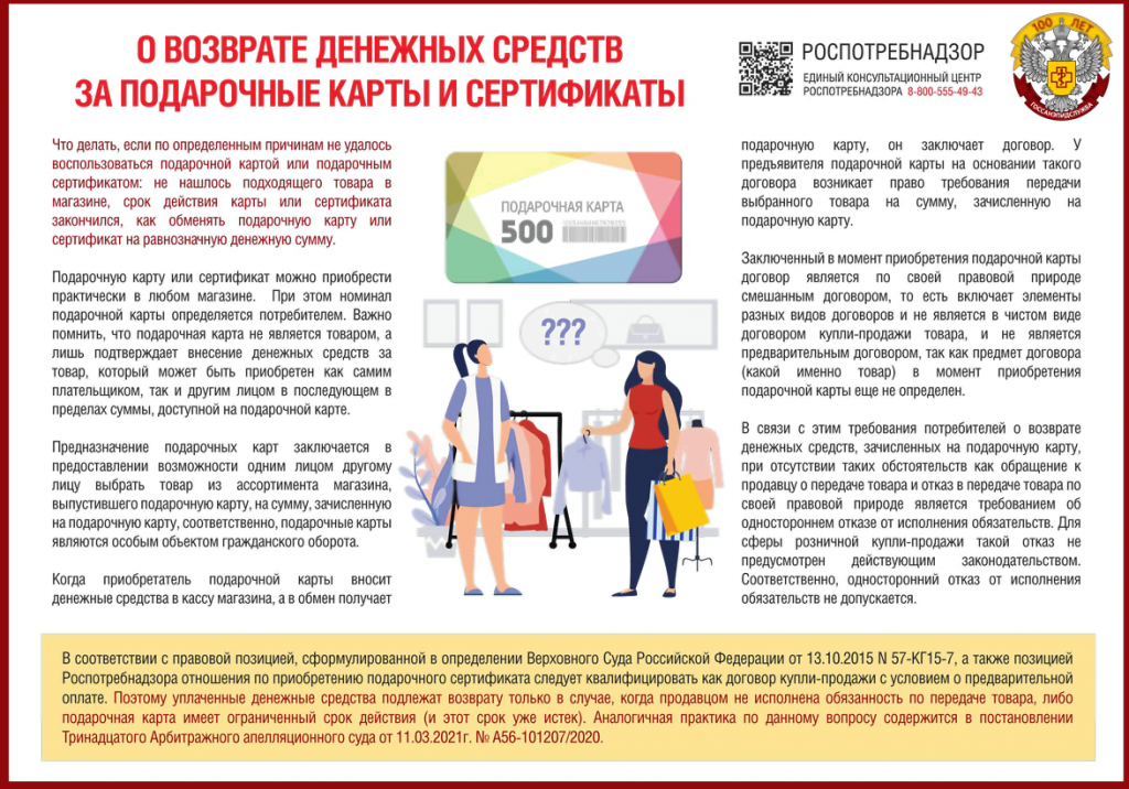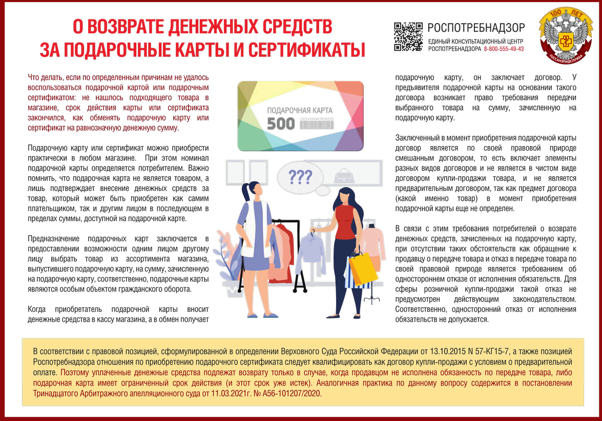 Памятка о возврате денежных средств за подарочные карты и сертификаты